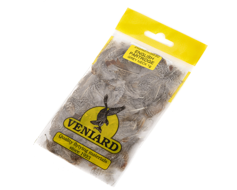 De VENIARD English Partridge Grey Neck is een klassiek en hoogwaardig bindmateriaal dat onmisbaar is voor de traditionele én moderne vliegbinder. Deze natuurlijke patrijzennek staat bekend om zijn prachtig gemarkeerde grijsbruine veren met zachte, levendige vezels die onder water een zeer natuurlijke beweging geven.
